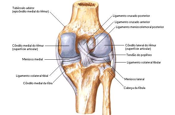 ligamento cruzado anterior e outro posterior, dois meniscos (disco de